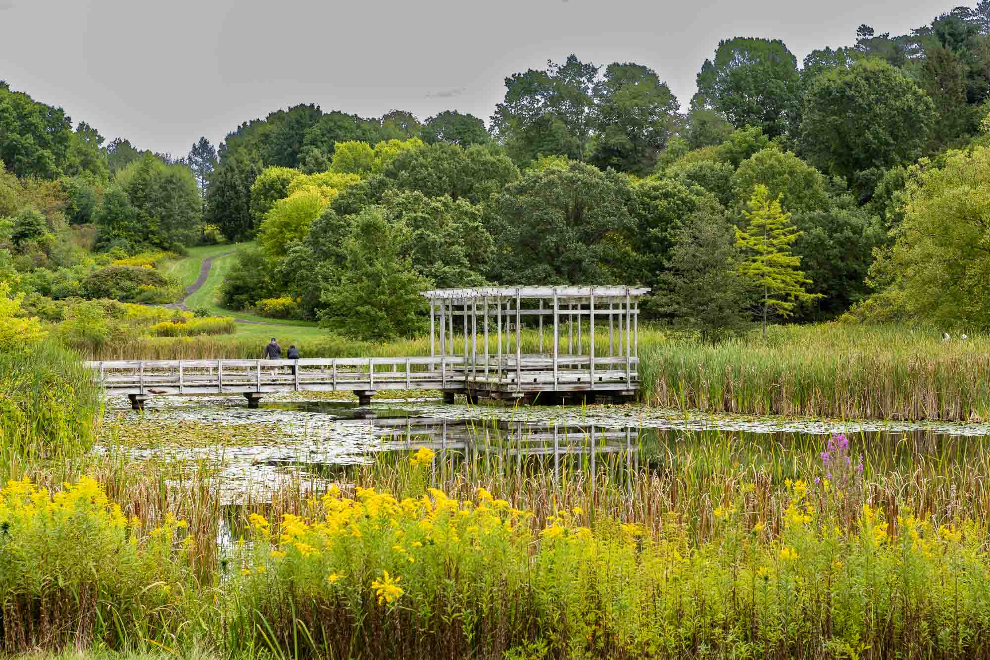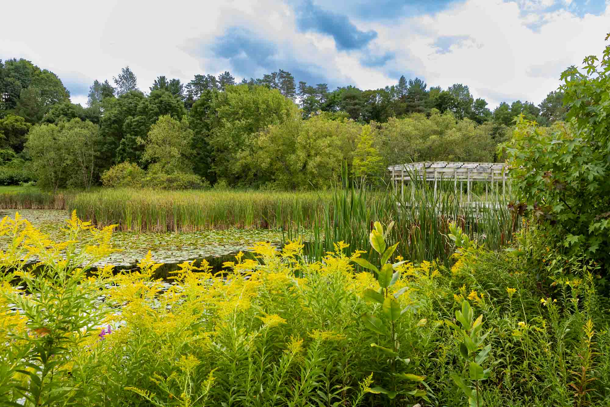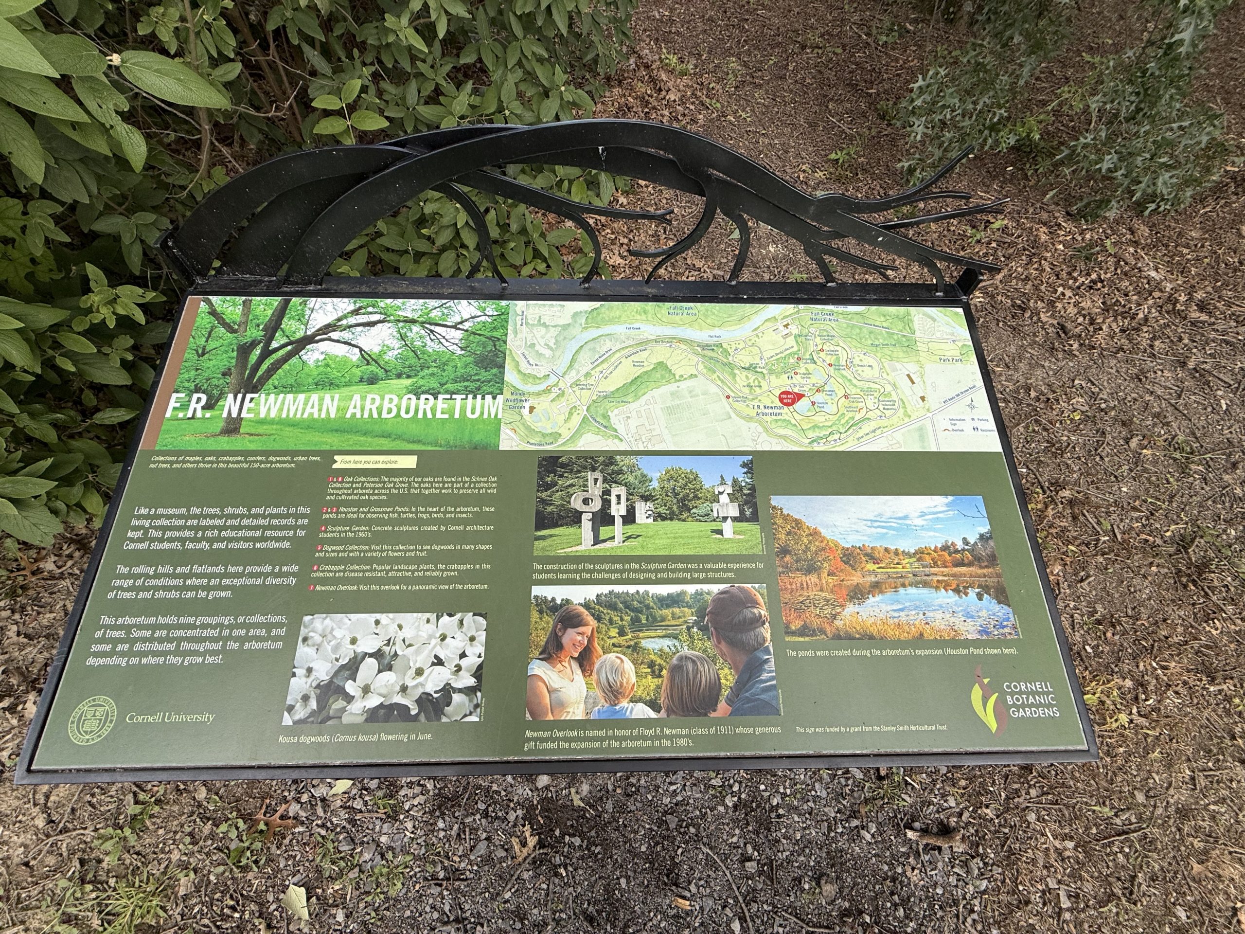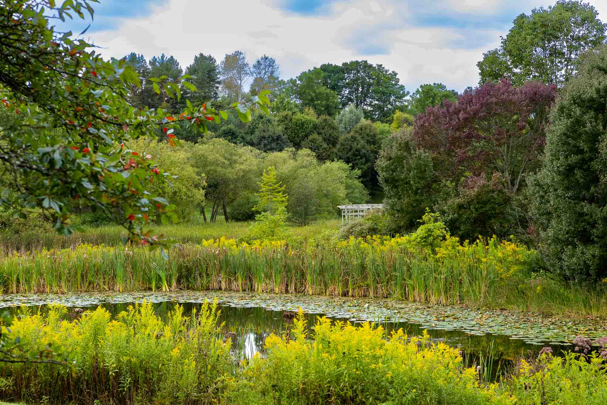 Voted the #1 most beautiful college arboretum, the 100-acre F. R. Newman Arboretum of Cornell Botanic Gardens offers several miles of trails that wind through rolling hills and valleys. The arboretum features eleven tree collections interspersed with specialty gardens including an extensive shrub collection and shaded stream side garden. The plants, trees and shrubs here are labeled and detailed records are kept for research, education and enjoyment. Two overlooks and benches throughout the arboretum provide panoramic views of this post-glacial bowl shaped landscape. Visitors are encouraged to ring the large bell at Newman Overlook and look for wildlife from the boardwalk over Houston Pond. Trails here connect with the Cayuga Trail, and trails within the Botanic Garden area around the Nevin Welcome Center, Cornell Campus, the Mundy Wildflower Garden and Fall Creek Valley Natural Areas.