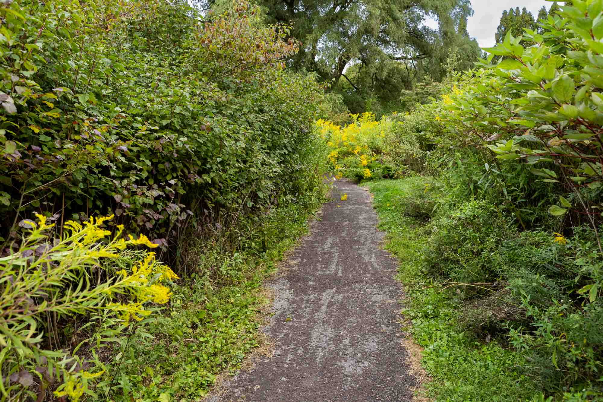 On north side of Dryden Rd, go west to 150 ft past “Erie Canal…” sign. Turn right (north) and walk 100 ft across lawn to Arboretum Road. Turn left, go 1/4 mile to trailhead on right.
