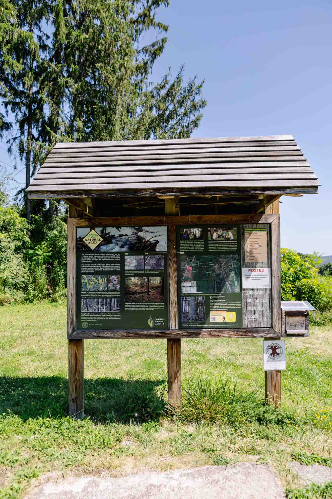 Cornell Botanic Gardens Fischer Old-growth Forest Natural Area is described as majestic, magical, and inspirational. With trees over 150 feet tall, this ancient forest is a sanctuary in every sense of the word. The blue blazed trail loops around a meadow and shrubland that has established since it was abandoned from agricultural use. The red blazed trail passes through young forest before entering an ancient forest with an exceptional diversity of tree species and sizes–many over 300 years old! This old-growth forest is considered the best of the few remaining pre-European settlement forests in the region. Hiker’s note: The trail crosses a small gorge, traverses some steep forested slopes, and has a creek crossing.
