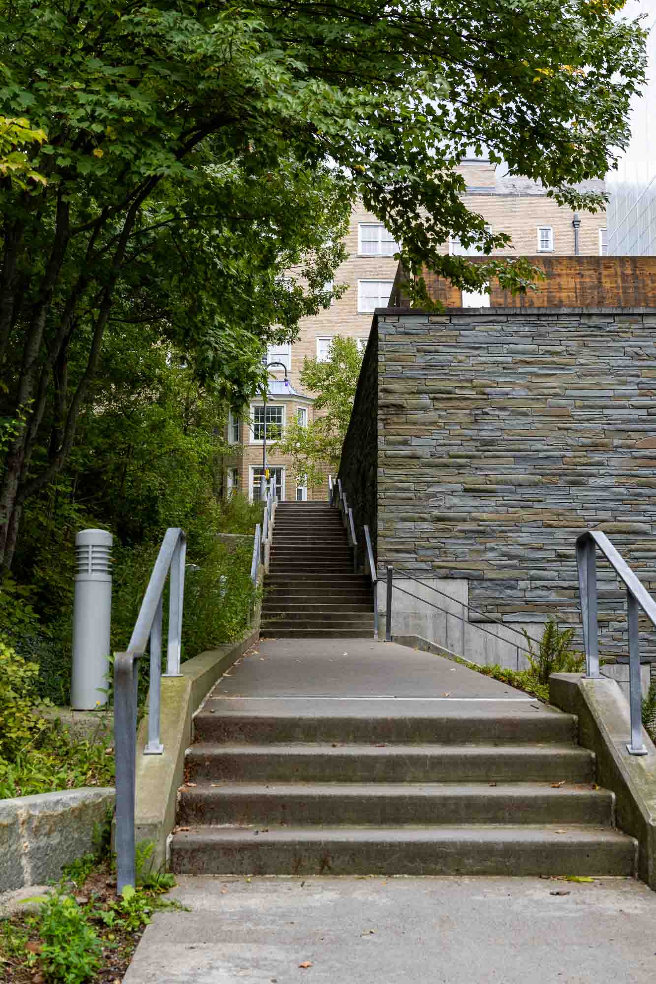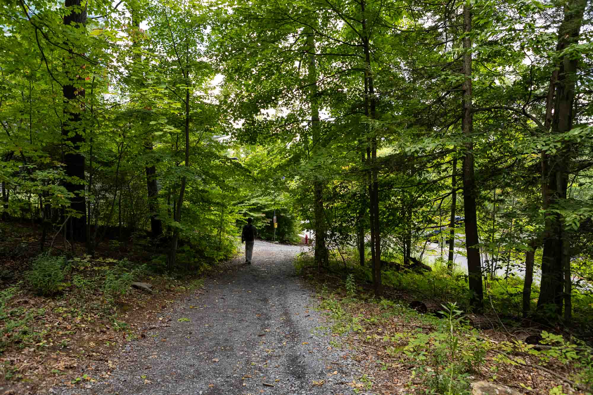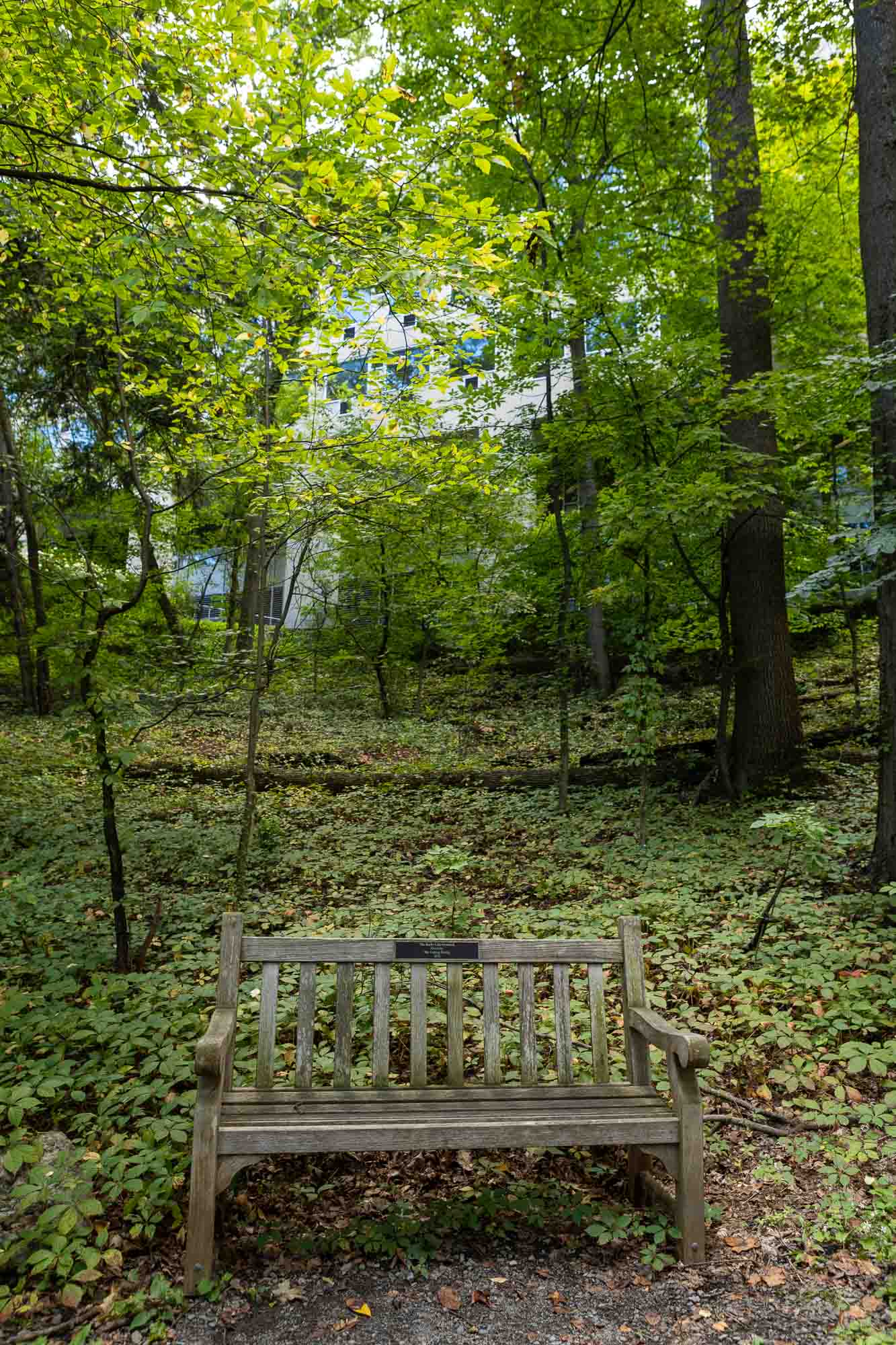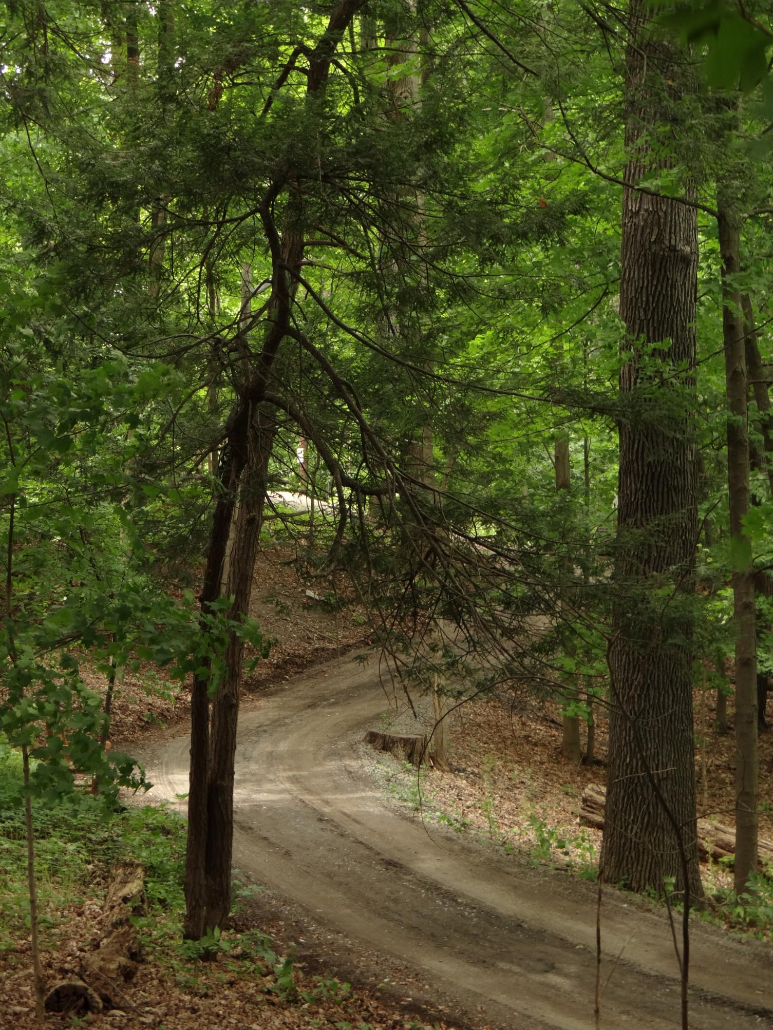 Trails within Cornell Botanic Gardens Mann Library Slope Natural Area connect Cornell’s Ag Quad to the Cayuga Trail, Beebe Lake Natural Area and Botanic Garden area around the Nevin Welcome Center. The preserve here includes very large, old trees including sugar maple, beech, hemlock and basswood. Trees of mixed ages typically coexist in very old forests such as this one.