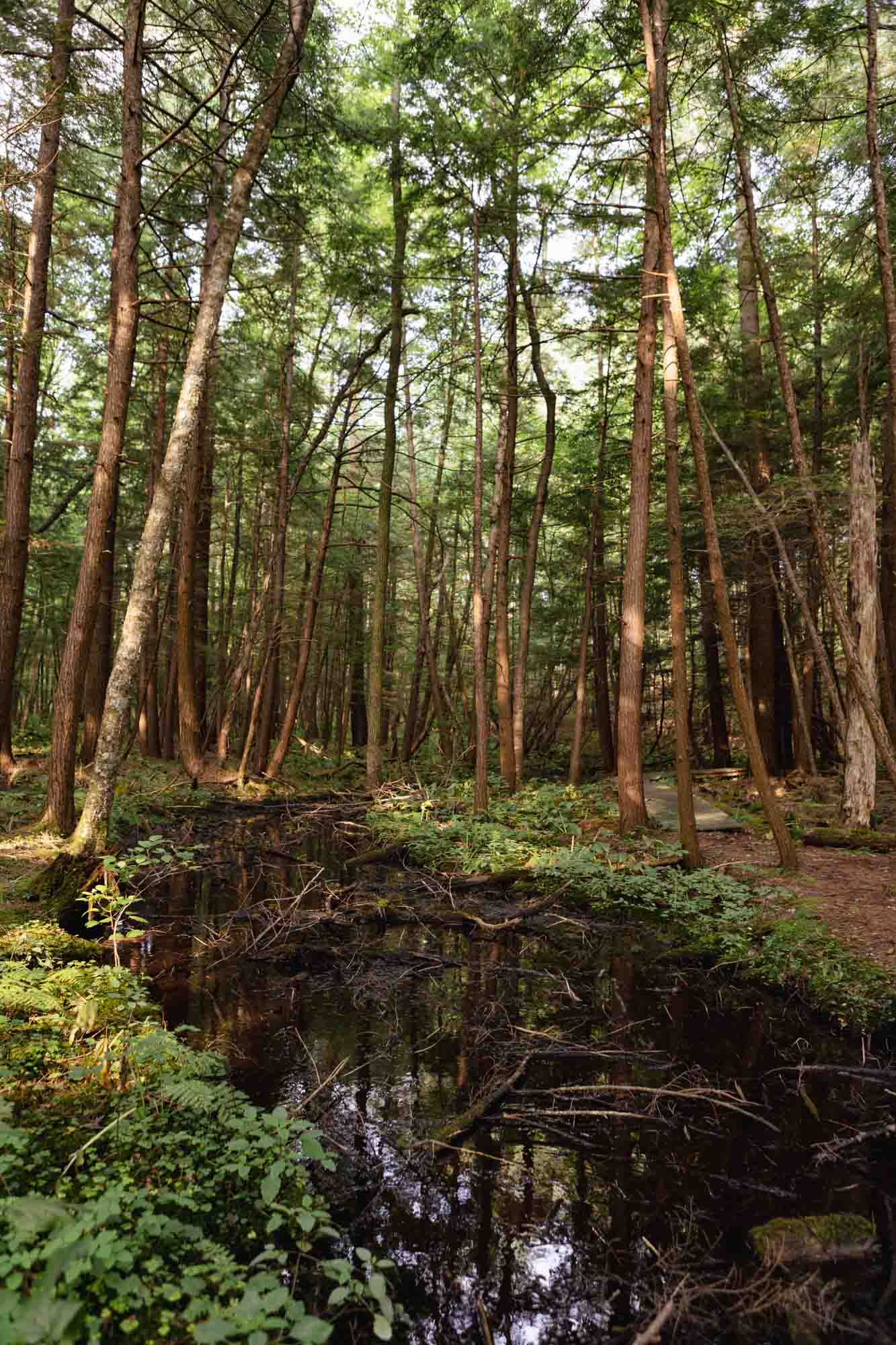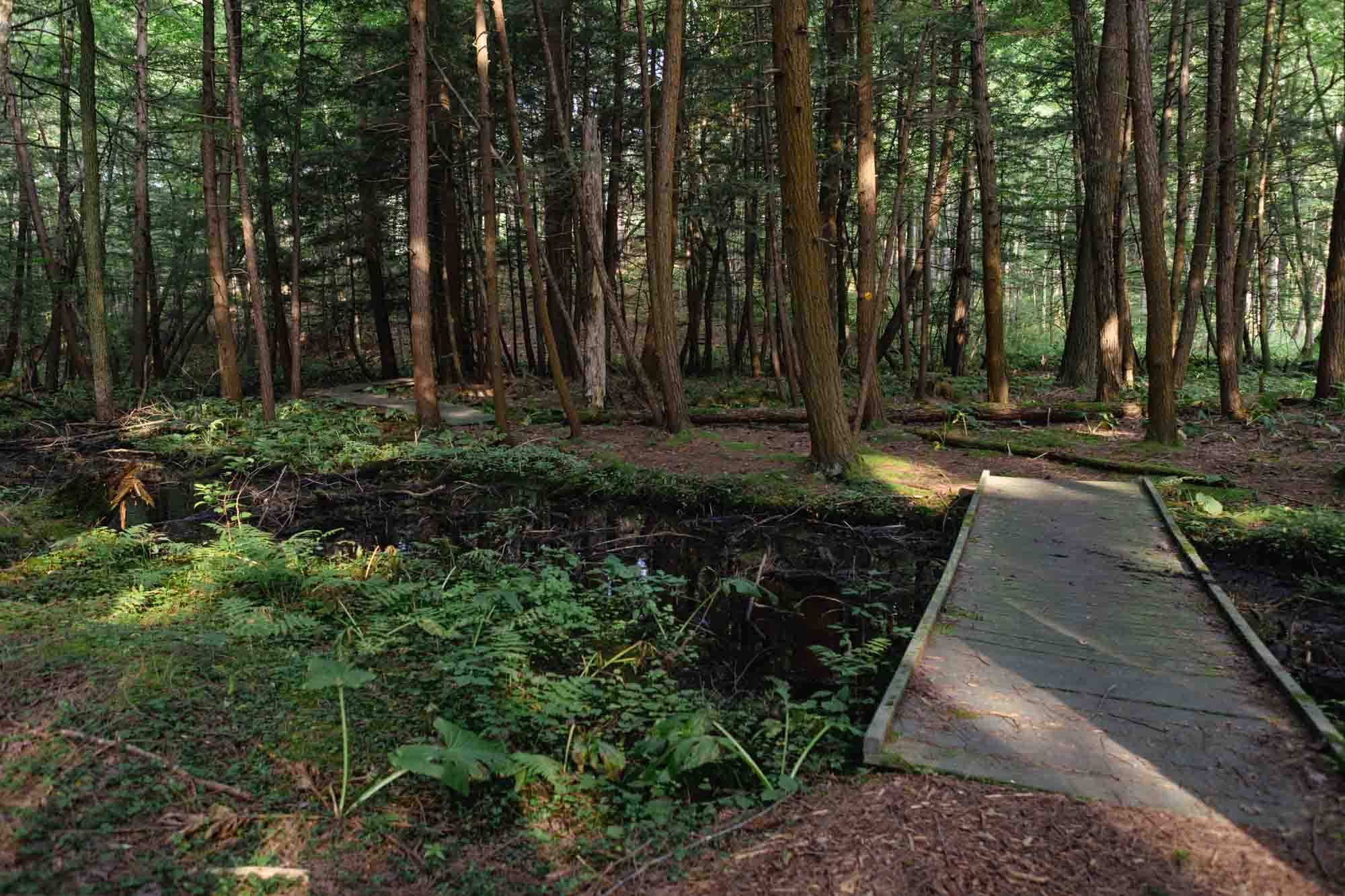 Commonly known as Malloryville Bog, The Nature Conservancy’s O.D. von Engeln Preserve has more than a mile of eskers – ancient river beds that once ran through glaciers – winding through a pocket of forest adjacent to Fall Creek. Many distinct plant communities thrive on the preserve’s bogs, swamps, marshes and fens. Look for songbirds and unique plants like the carnivorous pitcher plant, which traps insects to obtain nitrogen.