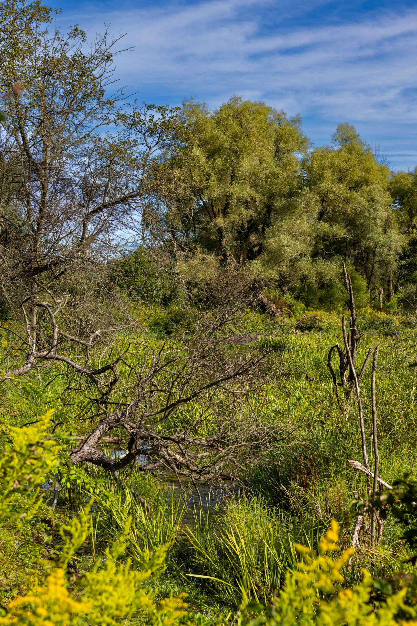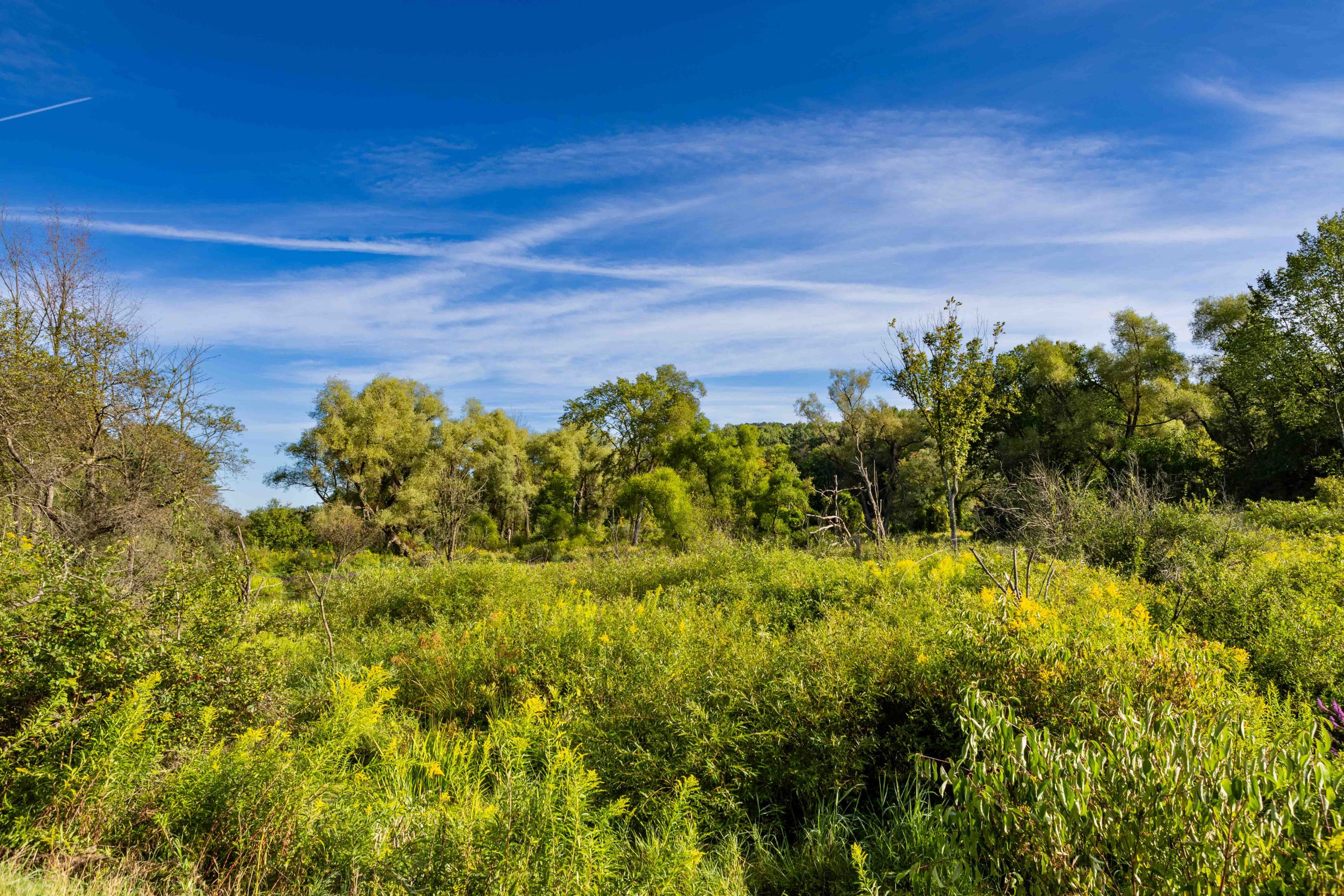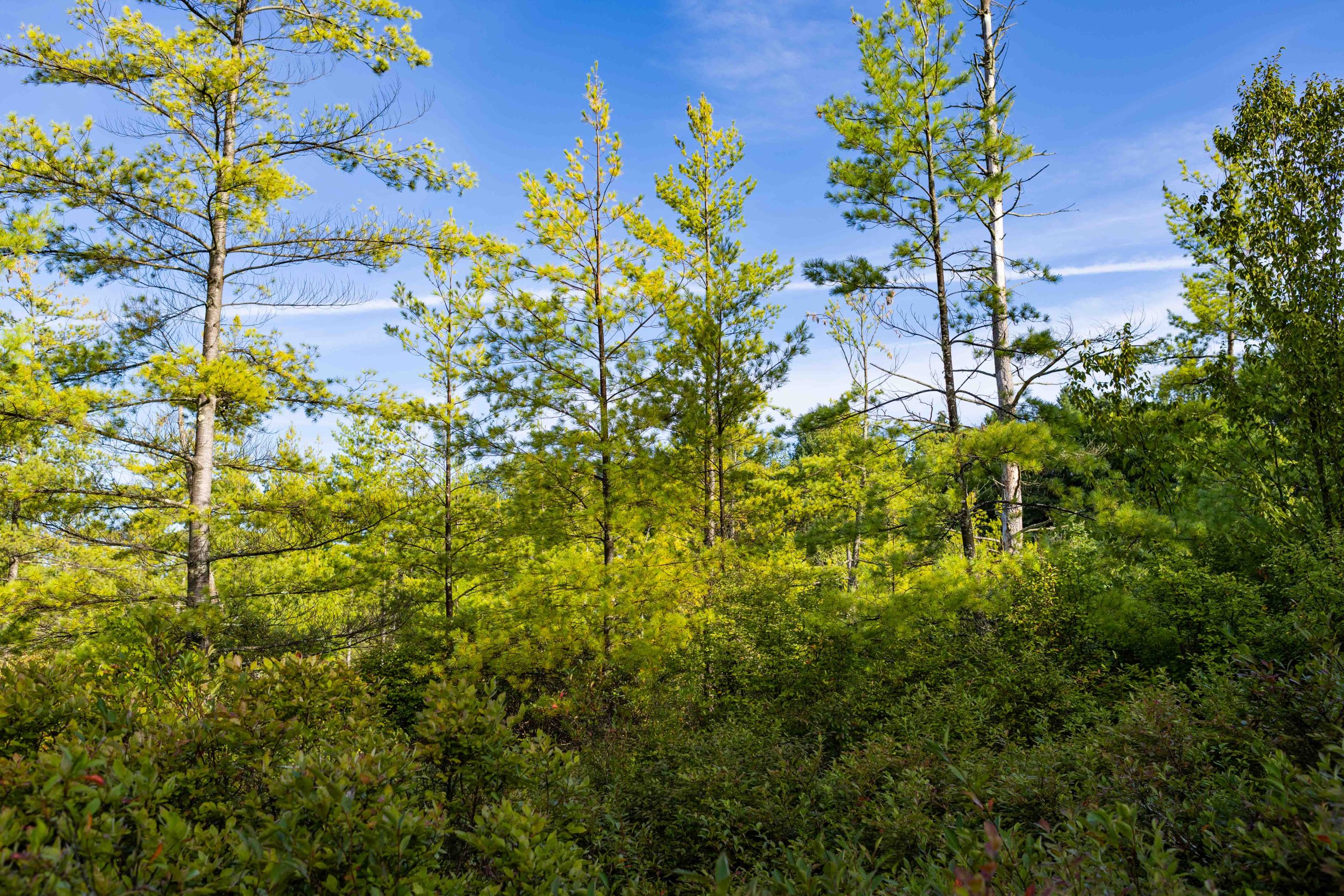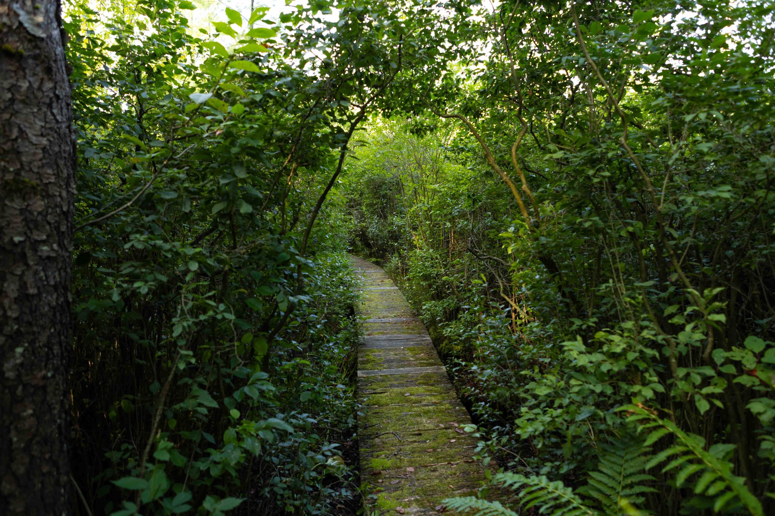 This trail provides the rare opportunity to observe a floating mat sphagnum-heath peat bog from a short boardwalk in Cornell Botanic Gardens Purvis Bog Natural Area. Please note that the wetland habitat is extremely sensitive, so visitors must remain on the boardwalk to help protect this fragile natural area. A trailhead for the multi-use Jim Schug Trail can be found nearby off East Lake Road. This scenic trail crosses through Cornell Botanic Gardens Purvis Road Wetlands Natural Area and Dryden Lake Park, following a railroad bed all the way to the Village of Dryden. The Purvis Road Wetlands Natural Area contains active beaver dams and various wetland habitats, and is an ideal site for wildlife viewing, especially birding.