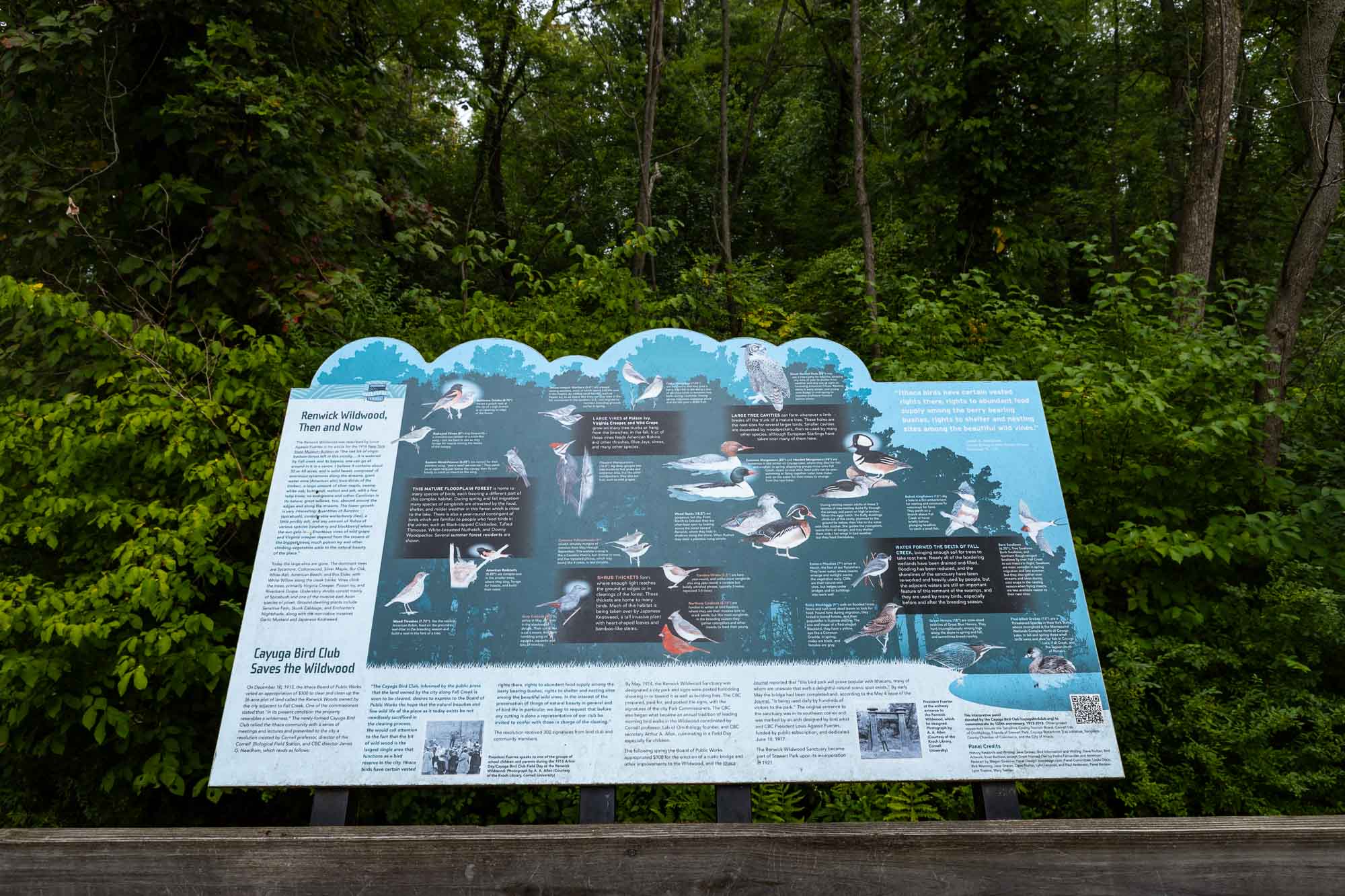 The Renwick Wildwoods, also known as the Fuertes Bird Sanctuary, is a flood plain forest remnant bounded by Stewart Park, Fall Creek and Route 13. Access is from Stewart Park. The primarily mulched trails connect at the north end to the Cayuga Waterfront Trail and Stewart Park.
