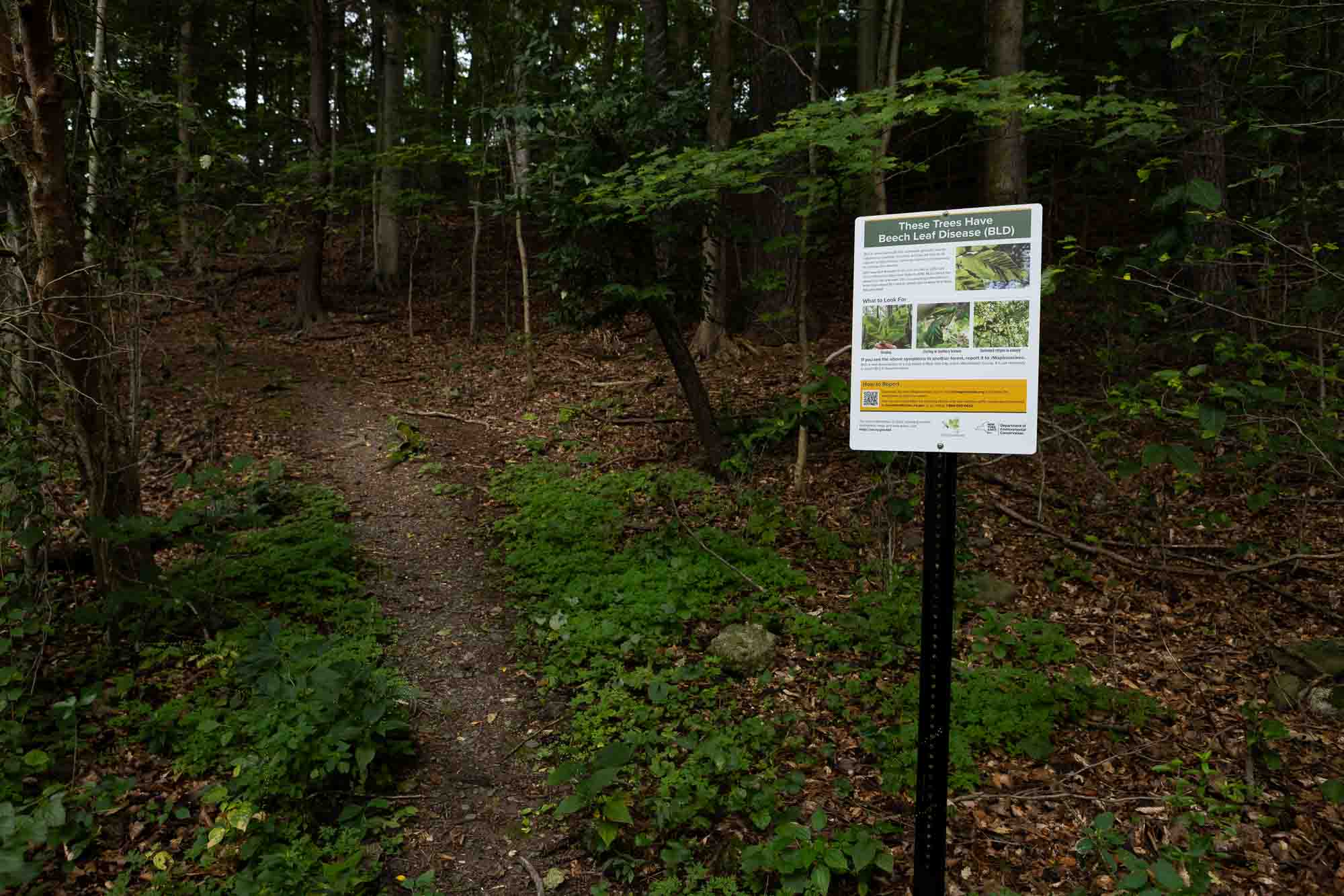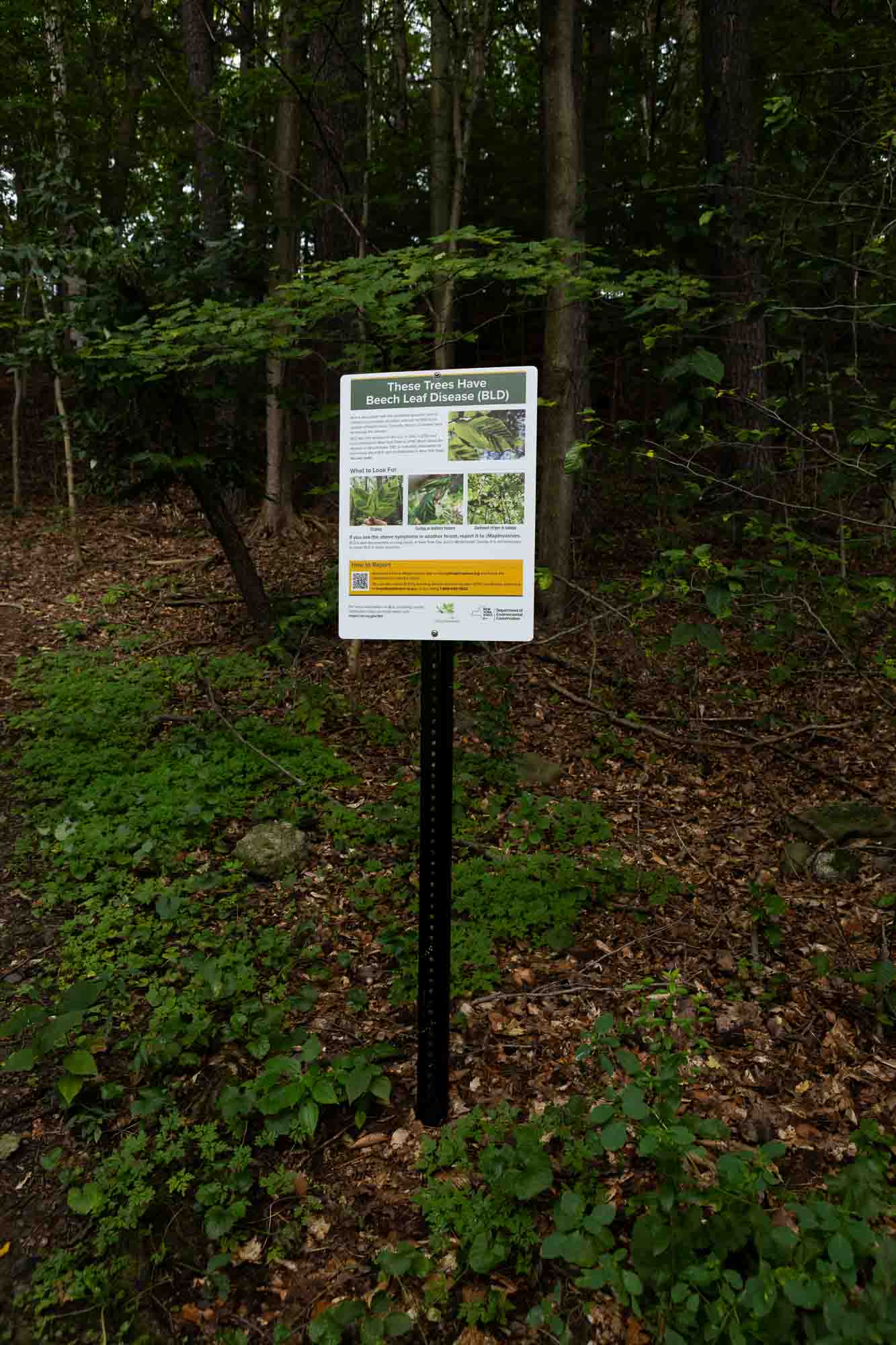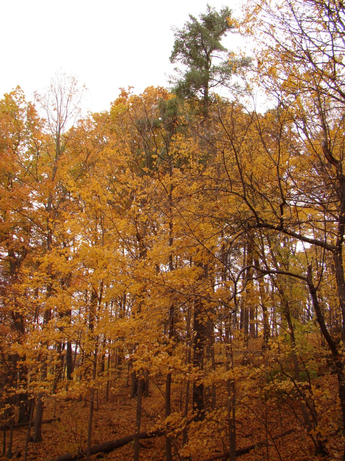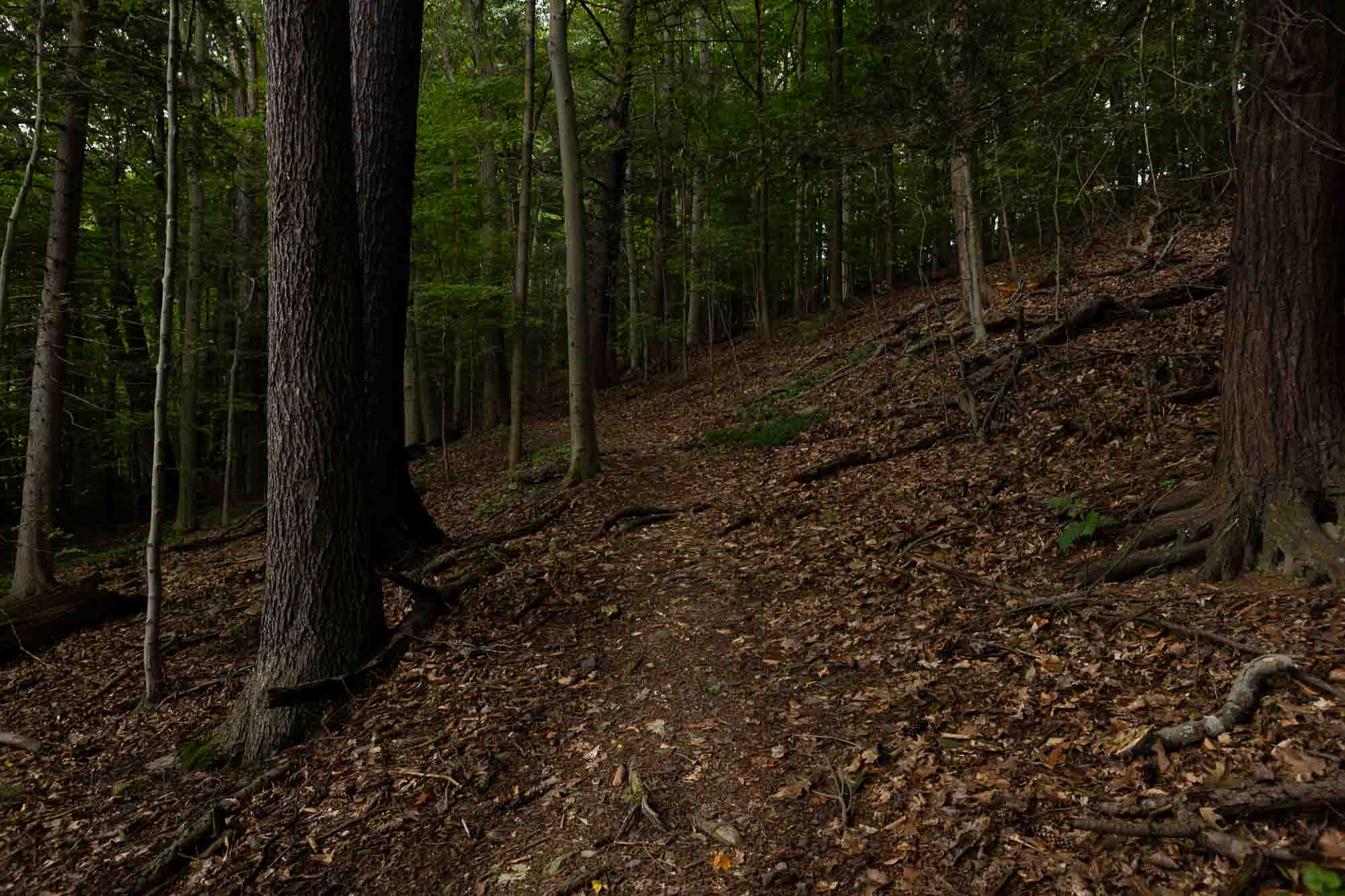 Cornell Botanic Gardens Slim Jim Woods Natural Area contains one trail which cuts through this 9-acre woodland on the southwest edge of Cornell Botanic Gardens F. R. Newman Arboretum. You will find a rich diversity of trees in this beautiful old forest, including oak, hickory, maple, pine and hemlock — many of which are quite old. The eastern half of the trail is steep and ends at the high point of a slope known as Newman Meadow. There you can rest on a bench to enjoy the view or admire an old iconic oak looming overhead. The Slim Jim Woods Trail connects with many other trails within the Arboretum as well as other nearby Cornell Botanic Gardens Natural Areas via the Cayuga Trail.