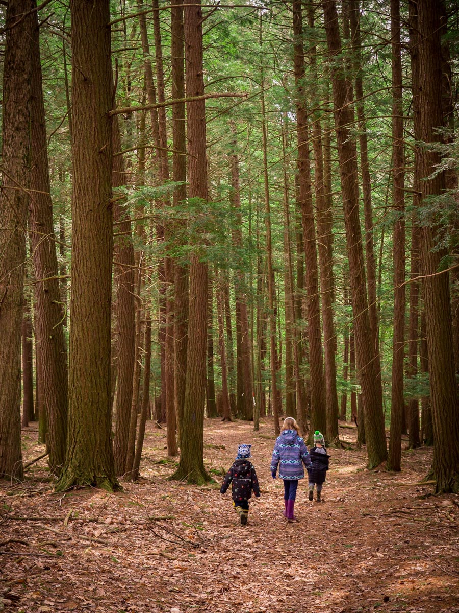 Visitors can enjoy towering hemlock trees at this preserve, owned by the Finger Lakes Land Trust. Twenty-five acres of the Stevenson Forest Preserve had been owned by the Stevenson family of Enfield since after the Revolutionary War. In 1995, this fine old forest became the first parcel of the preserve that would eventually grow to 83 acres. Today, visitors can enjoy a 1.2-mile hiking trail that ends in an impressive view of the Enfield Valley. Trail visitors will notice the white-blazed Finger Lakes Trail/North Country National Scenic Trail along the way.